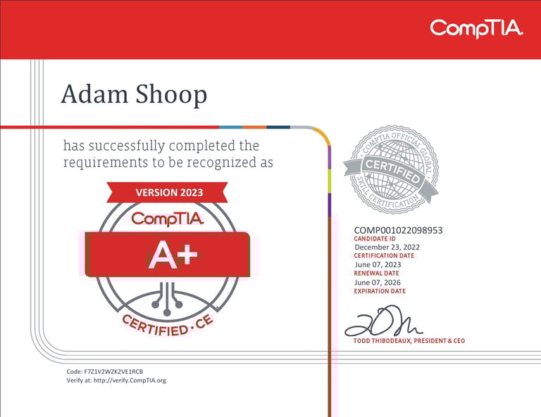 I hold CompTIA A+, Network+, Security+, and Project+ certifications, as well as the Linux Essentials certification. That foundation lets me handle everything from basic device setups to more advanced networking and configuration work with accuracy and confidence.